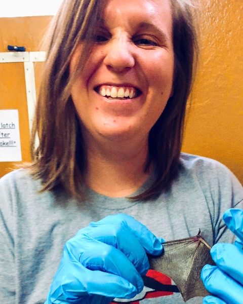 A: I first became interested in bats when I was a Wildlife Research Fellow at Brukner Nature Center. I got to participate in a community science project using acoustic monitors to track bats for the Ohio Division of Wildlife. It was so cool to be able to hear bats echolocate with these acoustic monitors and contribute to a long-term research project tracking bat populations over time. My interest in big brown bats piqued when I learned about white nose syndrome. Bat populations have been decimated by this disease, but big brown bats less than some other species. As part of my PhD studies, I’m trying to figure out why. Besides, they are one of the most adorable sky puppies!