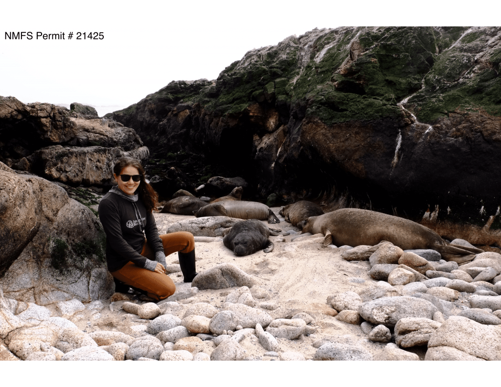 Northern elephant seals are charismatic animals that act as sentinel species or provide insight into the overall health and viability of their ecosystem. This research aims to help monitor environmental changes in critical breeding habitats while assessing physiological and behavioral adjustments to thermal stress in potentially at-risk populations such as island colonies. Emily is conducting this work at three northern California sites, the southeast Farallon Island, Point Reyes National Seashore and Año Nuevo State Park. She is excited to determine if this research will yield results which can forecast future impacts of climate change on wildlife and identify if habitat degradation is problematic for thermoregulating elephant seals that experience significant life-history stages on land.