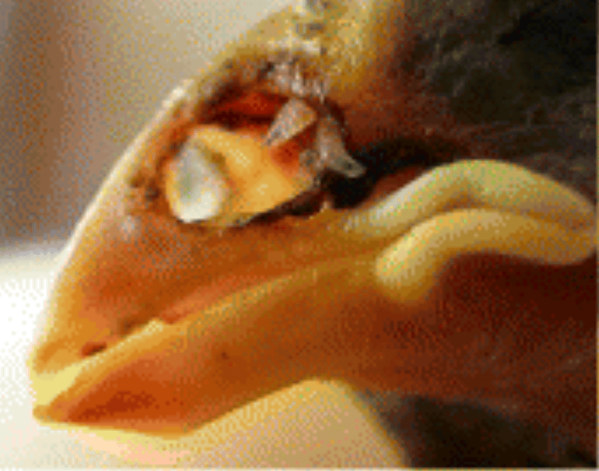 The avian vampire fly, Philornis downsi, is native to South America but can be found on the Galapagos Islands. Larval avian vampire flies infest bird nests where they target the beak of developing nestlings and feed on their blood, tissue, and keratin. Such infestations widen the nestling’s nasal openings and deform their beak. In fact, up to 34% of adult birds sampled on the islands showed signs of wider nasal openings. By altering their beak structure, the larvae may impact what and how the birds eat throughout their life. The Galapagos Conservancy has been developing strategies to control this pest to help protect the island’s precious bird populations.